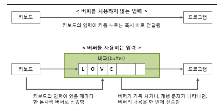 일정량이 모이면 출력 장치로 한 번에 전송하는 기술로, 반복적인 I/O 작업에 따른 성능 저하를 줄여줍니다.