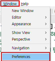 Window 버튼 클릭 후 Preferences 버튼을 클릭한다.
