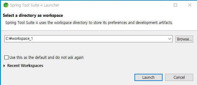 C 드라이브에 workspace_1 폴더를 생성하고 지정한다.
