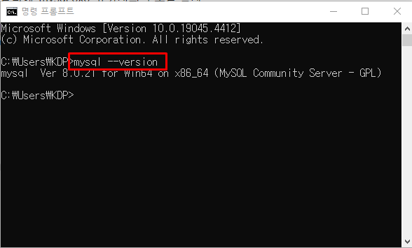 명령 프롬프트를 껏다가 다시켜고 mysql --version 확인