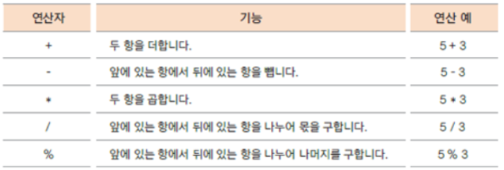 하나 이상의 항을 사용하여 특정 연산을 수행하는 기호를 연산자(Operators) 라고 합니다.