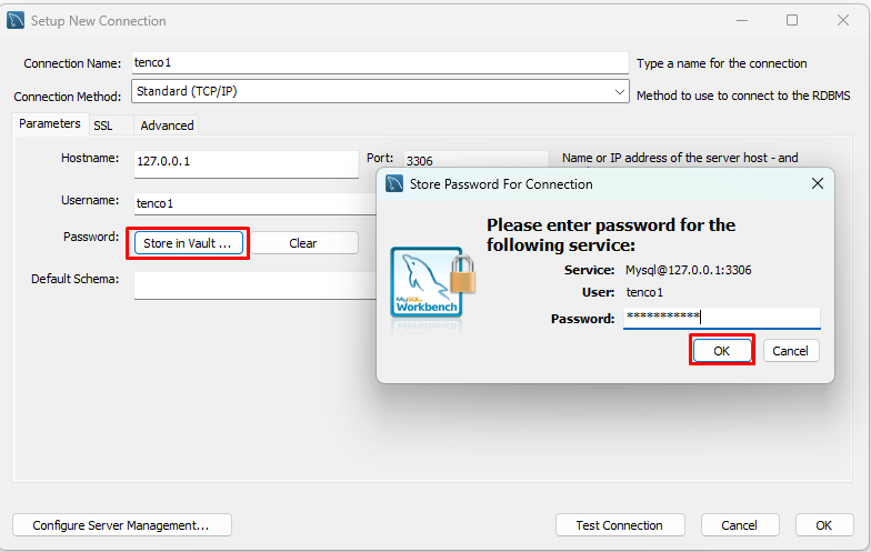 connection Name 과 Username 에 tenco1을 입력