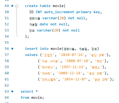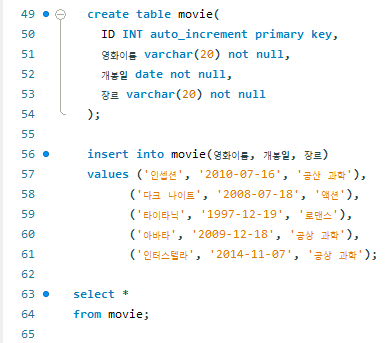 -- 영화에 관련된 데이터 베이스를 구축하자.