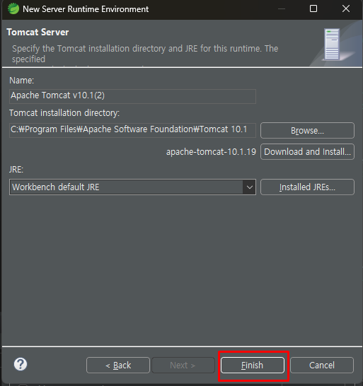 Finish를 클릭한다.