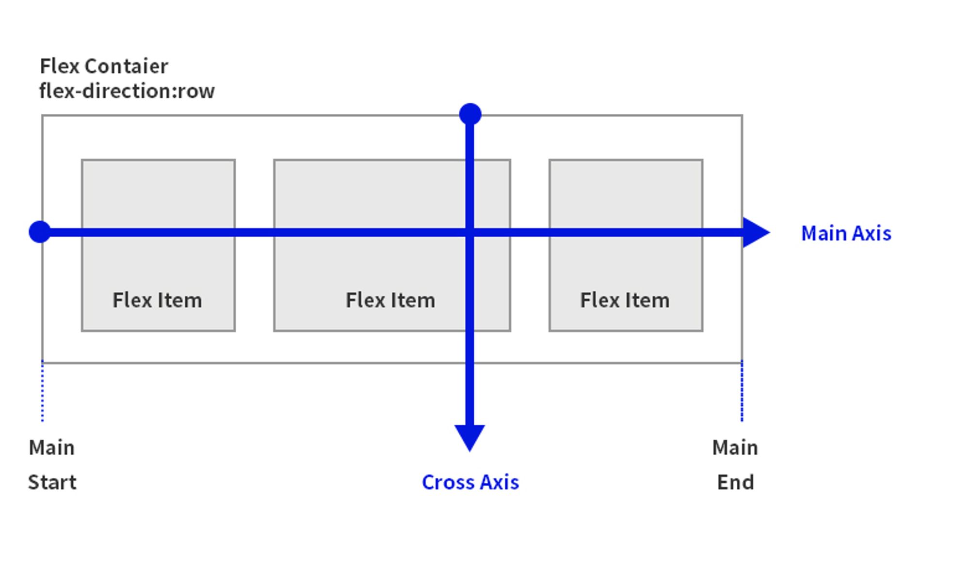 flex-direction:row ์ธ ๊ฒฝ์ฐ๋ ์ฃผ์ถ์ด ์ํ์ด ๋๊ณ flex-direction:column์ธ ๊ฒฝ์ฐ๋ ์ฃผ์ถ์ด ์์ง ๋ฐฉํฅ์ด ๋ฉ๋๋ค. - ๊ต์ฐจ์ถ ๋ฐฉํฅ(cross axis )