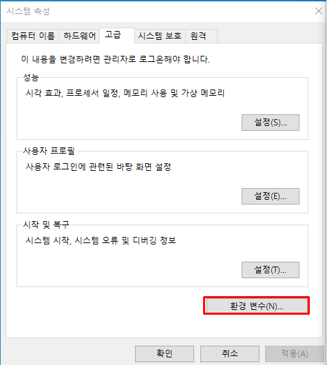 환경변수 —> 시스템 변수(S)안에 Path 변수 더블클릭 후 새로만들기(N)