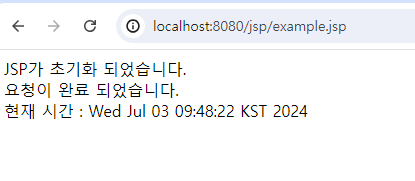 처음 실행하게 되면 initialized 가 null 이기 때문에 if문이 작동하여 "JSP가 초기화 되었다" 라는 문구를 출력한다.