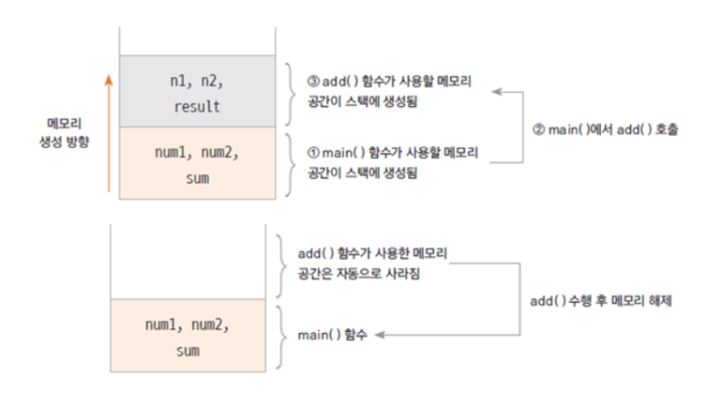 ● 함수의 수행이 끝나면 자동으로 반환 되는 메모리