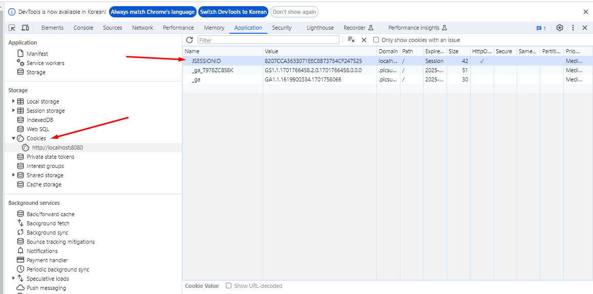 스프링 서버에 클라이언트가 최초 요청시 응답으로 JSESSIONID 를 넘겨 받습니다.