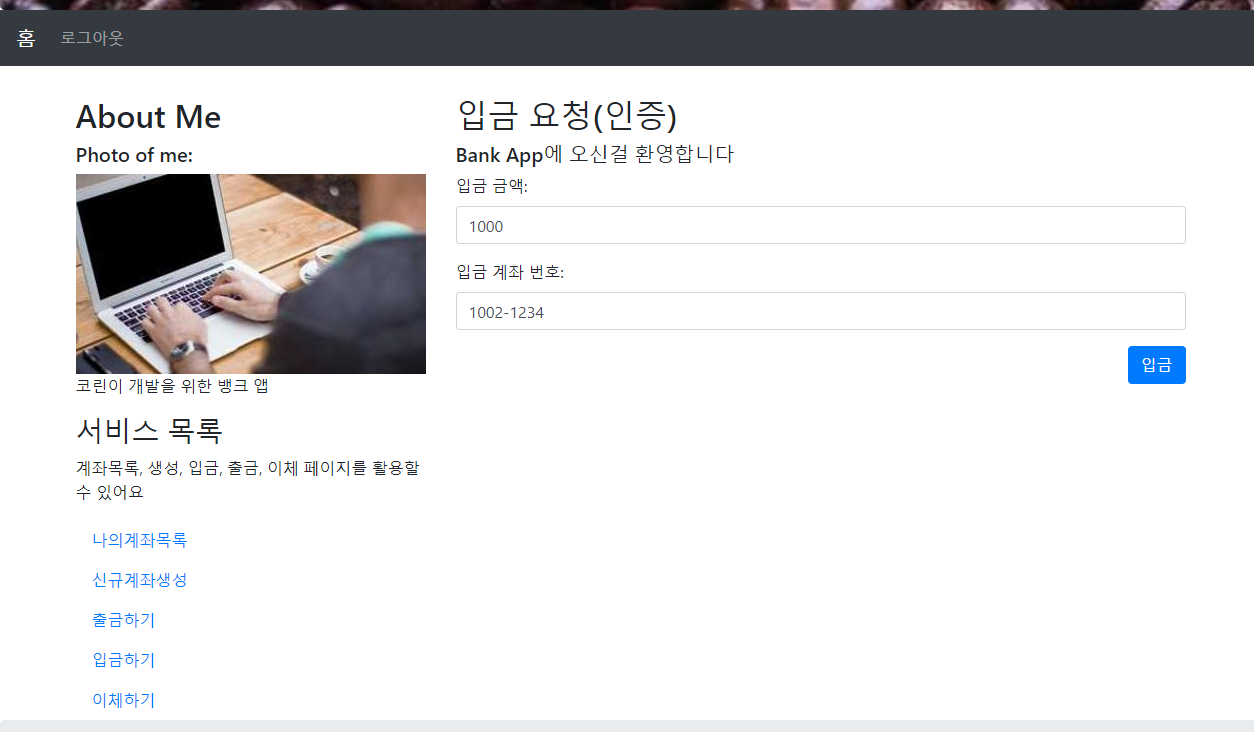 <h5>Bank App에 오신걸 환영합니다</h5>