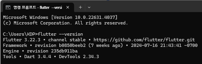 path에 C:\tools\flutter_windows_3.22.3-stable\flutter\bin 경로 저장