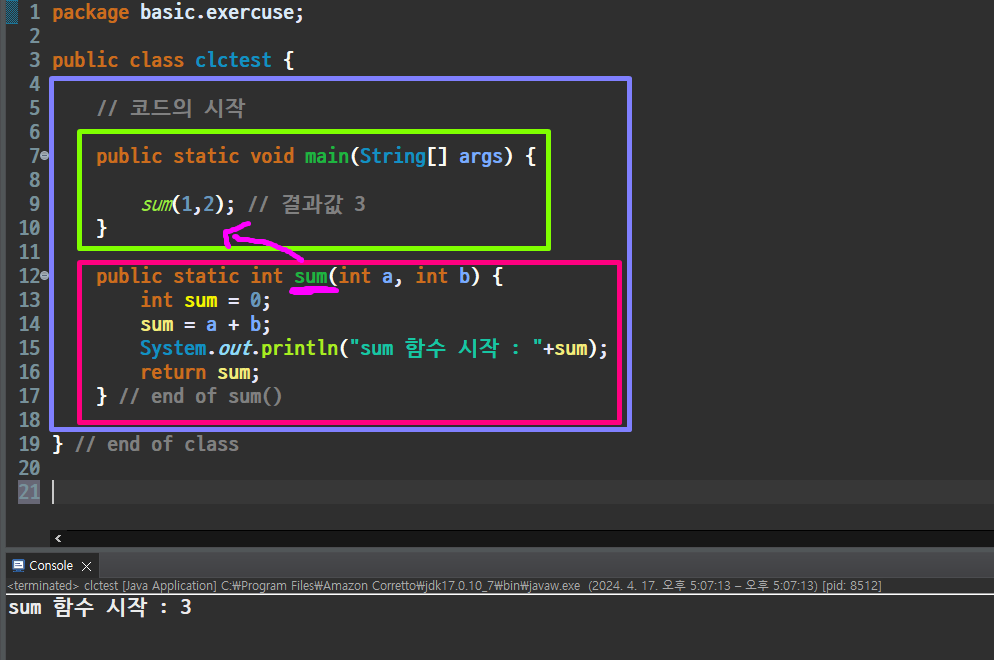 main 함수에서 함수를 실행할 수 있다.