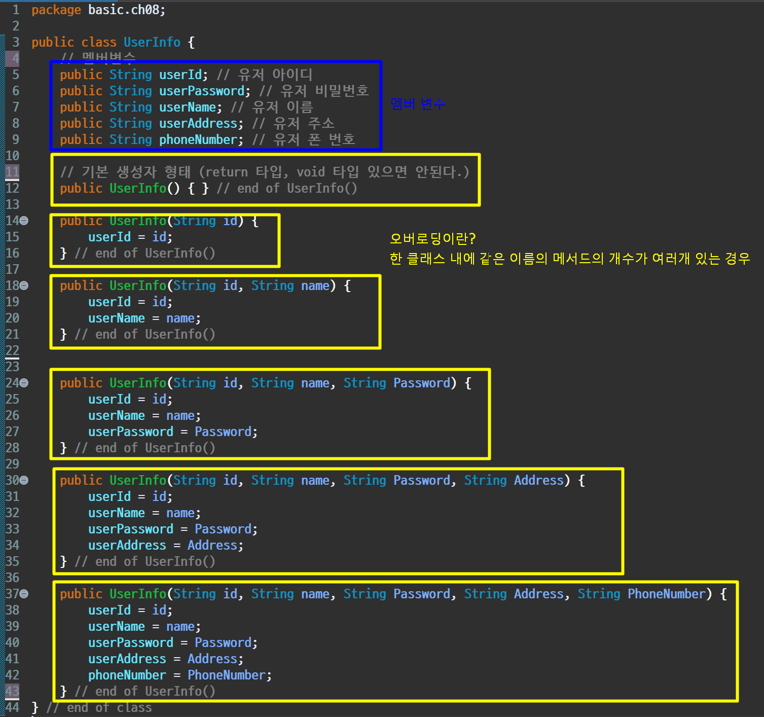 사용자 정의 생성자(Overloaded Constructor)