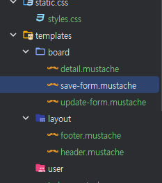 - src/main/resources/templates/ 디렉토리에 Mustache 템플릿 파일을 생성합니다.