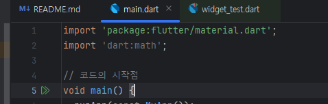 // 일반적으로 MyApp() 등의 클래스를 정의하여, 플러터 프로젝트를 실행함