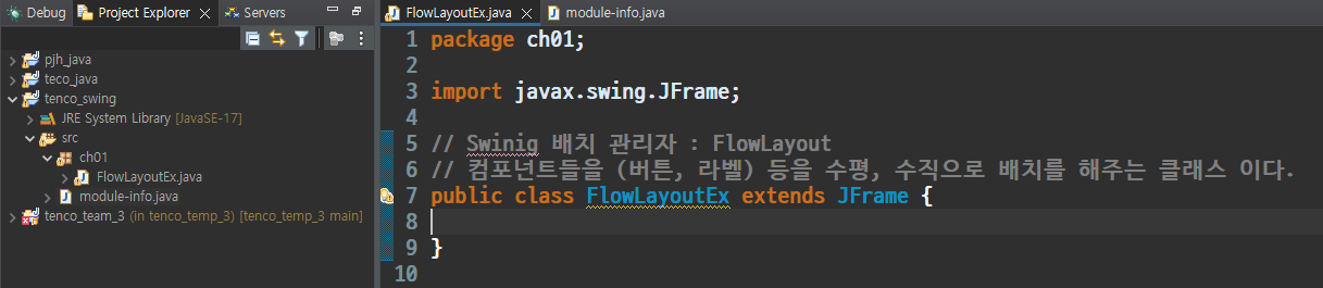 // super.setLayout(flowLayout); // 배치관리자 --> FlowLayout