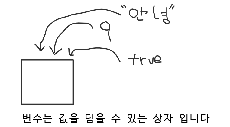 데이터(값)를 담을 수 있는 상자 (메모리 공간)